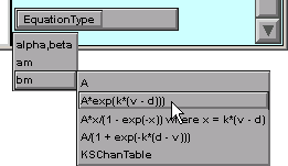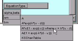 - The GateGUI's EquationType menu also allows gating properties to be specified in terms of steady state and time constant. The functional forms offered for inf,tau (constant, logistic, exponential) are the only ones necessary for a model in which the energy difference between states is linear with voltage and the energy barrier is also linear with voltage.