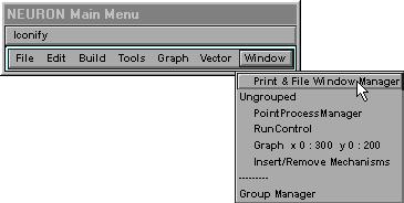 NEURON Main Menu / Window / Print & File Window Manager